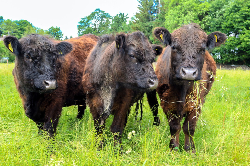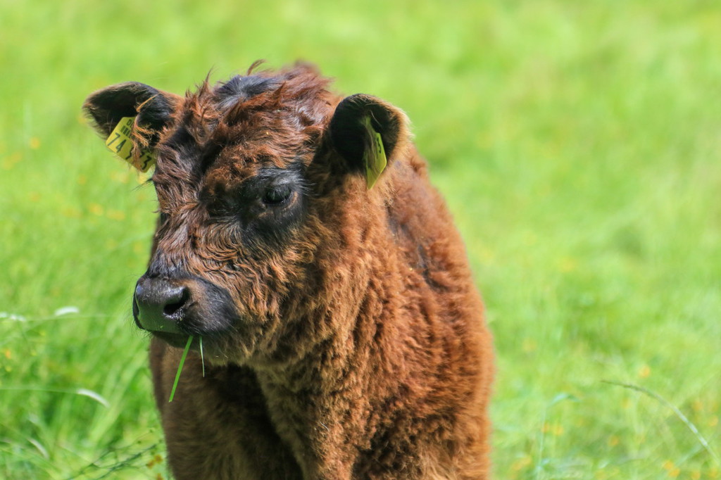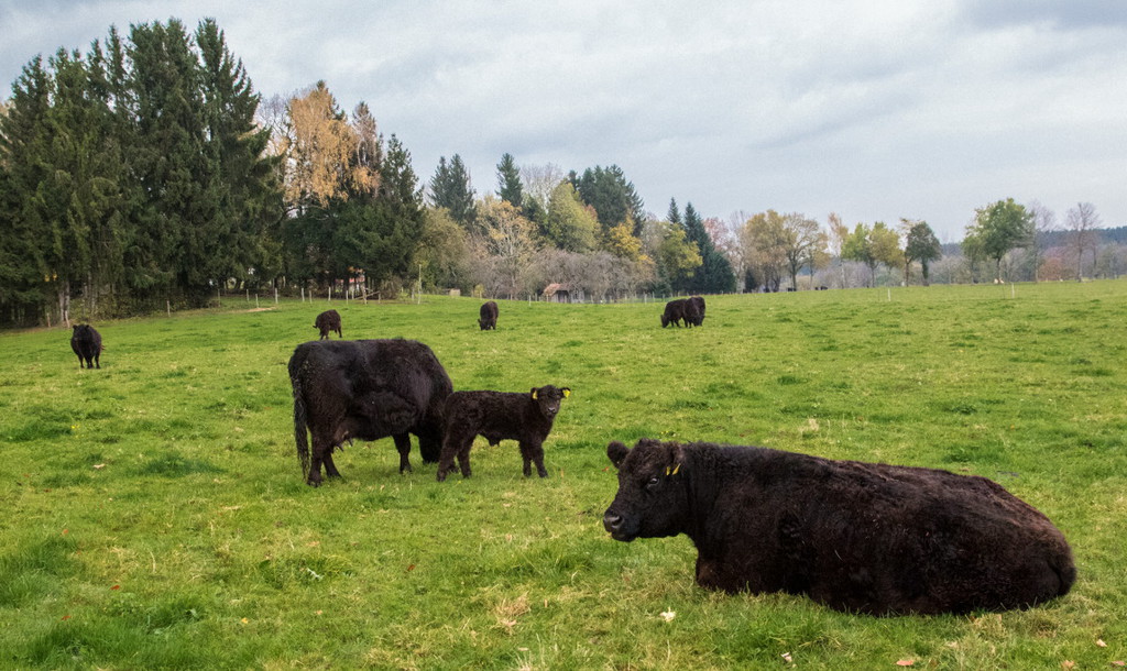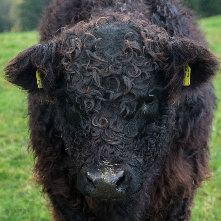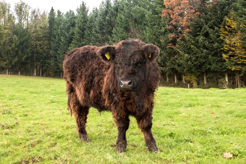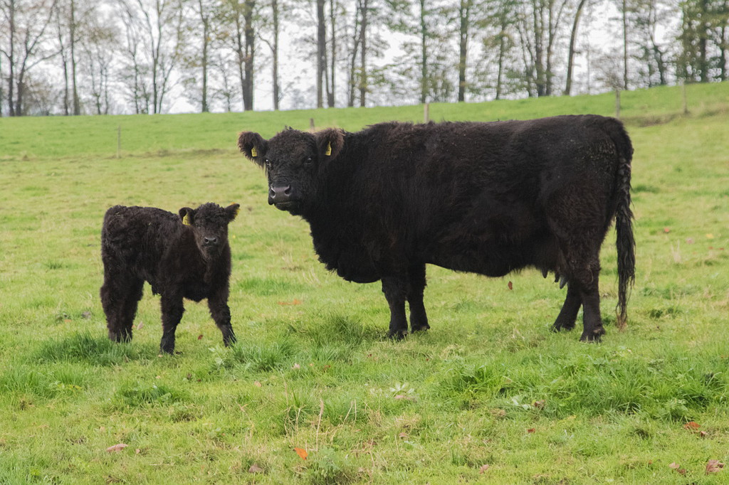 Ein wesentliches Merkmal der Galloways ist ihr doppelschichtiges Fell mit langem, gewelltem Deckhaar und feinem, dichten Unterhaar. Dies und eine vergleichsweise dicke Haut sowie der angepasste sparsame Stoffwechsel machen die Galloways besonders widerstandsfähig, weshalb sie ohne Probleme auch harte Winter im Freien überstehen können. Sie sind genetisch hornlos, friedfertig, genügsam und widerstandsfähig. Mit ihrem etwas leichteren Gewicht – die ausgewachsenen Mutterkühe wiegen ca. 600 kg, ein erwachsener Bulle bringt ca. 900 kg auf die Waage – und den breiten Hufen schonen sie die Grasnarbe und bringen auch bei naturnaher Haltung eine gute Fleischleistung in hervorragender Qualität. Galloways haben eine starke Herdenbindung, einen ausgeprägten Mutterinstinkt, sowie eine überdurchschnittliche Futterverwertung. Sie sind langlebig, fruchtbar und leichtkalbig, wobei ihre Kälber leicht und von Geburt an sehr vital sind. Die Kälber trinken während der ersten 9 -12 Monate die Milch der Mutterkuh und probieren auch gleich, ob Gras und Heu auch schmeckt.